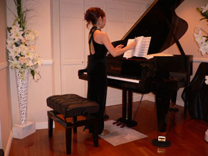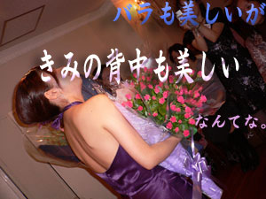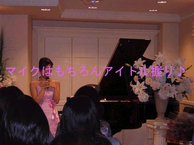 14:05 開演 皆様がお席につき、開演を今や遅しと待っております。 ドキドキドキドキ…、私の胸もうるさいほどに高鳴り、そして―――。 静かに入り口の扉が開き、杏子さんが現れました。 意表をついたラベンダーカラーの姫ドレスでのご登場です! 後ろに長く裾を引くデザインで、このまま、結婚式場で新郎を乗っ取っても、なんの違和感もございません。 ![]() は!これは、もしや…? 私の脳内において、0.3秒で展開される連想。 結婚式→ガーデンパーティ→天気雨 【振り向くと、薄紫色のシルクのドレスに身を包んだマヤが、真澄の木陰に逃げ込んで来たところだった。マヤはラベンダー色のドレスがよく似合う。黒髪に雨の粒が煌めいて眩しい。雨の音に包まれる。】(『雨ふりのあとで』―「story 1:天気雨」より) こちらに描写されたドレスを再現されているのではないでしょうか! 非常に杏子さんらしい演出でございます。 そのまま、ピアノの前に座り、『めぐり逢い』の優しく、そしてどこか切ない音たちが放たれました。 会場内に広がり、そして参加者の心の中に瞬く間に浸透していく音たち…この感動を私のレポートでは、的確にお伝えできないのが、本当に残念でなりません。料理番組で、”この香り、テレビの前の皆様にはお届けできないのが残念です。いやぁ、美味しいですねぇ。皆様に召し上がって頂くことができないのが、本当に残念です”と言っているレポーターのような気分になってきます。 『めぐり逢い』を弾き終えたところで、杏子さんからのご挨拶です。 ![]() 「皆様こんにちは、ようこそおいでくださいました。はじめまして杏子です。 はじめましてではない方は、おひさしぶりっこ♪ということで。 今日はこんな素敵な所でこうして本当にコンサートをさせていただく事ができて、本当に幸せで、もう菌無量…、あ、今日は菌とか言わないって誓ったのに。 あと胸がいっぱいいっぱい○っぱいとかもね、言わないって決めてたのに。お上品に 行こうって。もう言っちゃったけど。オレとしたことが……。 えっと、コンサートプログラムを決めた時から、一曲目は”めぐりあい”にしようと ずっと決めていました。 ガラパロにめぐりあわなければ、めぐりあえなかった人たち、生まれなかったパロ、存在しなかったジカキやエカキ、そして今日という日、すべては最初にあった”めぐりあい”のおかげで、今日こしてここにいる皆さんと”めぐりあえた”そういう想いを込めて、弾かせていただきました。個人的にもとても好きな曲です。 ついでに言えば、このめぐりあいをお題に書いてくださった咲蘭ちゃんの納菌も一番早かったんですよ〜。そんなわけでまずは「めぐりあい」から始めさせて頂きました」 その後、同じく、アンドレ・ギャニオンの作となる『雨ふりのあとで』と『風によせて』をお弾きになられました。 以下はコンサート後に、その曲を聴いた時の想いを、咲蘭さんにインタビューした内容でございます。 『何度もアルバムで聴いた曲でしたけれど、いざ目の前のピアノから奏でられると、迫る音や音に込められた想いが想像を遥かに超えて、全身を貫くようでした。雨の香りに包まれ、音の揺らぎに身を任せるほかない状態ですね。その瞬間生まれた音をその瞬間毎に感じる。その瞬間の後は、ただ余韻だけが残る。まさにライブの醍醐味と言えるかと…』 その後、杏子さんが一旦、退出されたのですが、何か問題でも発生したのでございましょうか? しかし、司会の花音さんから祝電の披露が行われ、そのままコンサートは続行されております。 「本日はたくさんの皆様からお祝いの電報を頂戴しておりますのでご紹介致します。 ”今日はその場に居られなくて、本当に残念です。今日ほど仕事を投げ出したいと思ったことはありません。 お集まりの皆さんにお会い出来ないのも、杏子さんの演奏を聴けないのも残念で仕方ありません。どうぞ、皆さんでお楽しみください。 速水真澄” と言うことで、我らが愛しの社長より頂戴致しました」 おや?真澄様からの祝電ですか…、仕事で行かれないようなことをおっしゃってますが、怪しいものでございます。どこぞで、マヤ様へのストーカー振りを発揮されているのではないでしょうか…。 「もうひとつご紹介させて頂きます。 ”真澄様が行けないということは、私も行けないということでして、まことに残念です。素晴らしいコンサートになりますことを、サングラスの中心を押さえながらお祈り申し上げます。” 水城冴子様より頂戴致しました。 また、お花とともにメッセージを頂いておりますので、こちらもご紹介致します。 ”本日、こちらで、紫のバラの人のお誕生日お祝いが開催されると聞きました。いつも見守って頂くばかりのあたしですが、今日はお集まりの皆さんと一緒にお祝いをさせてください。 紫のバラの人、お誕生日おめでとうございます!日頃の感謝の気持ちを込めて… ” と言うことで、