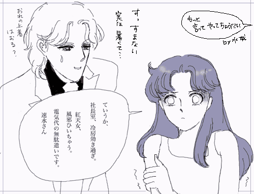 新聞やニュースなどの賑やかしとなっているクールビズ。 ノーネクタイの真澄様もよろしかろうとは思いますが、でもやっぱり三つ揃いの白スーツでいてほしいと思ったり…。